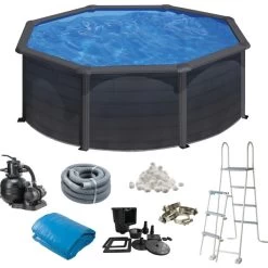 Swimmingpoolen er inklusive 12v filterpumpe. Hvis poolen skal stå med vand i længere tid, anbefales det at bruge klor, så bassinet holdes rent og sundt i længere tid.