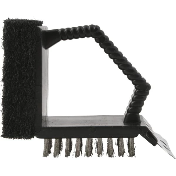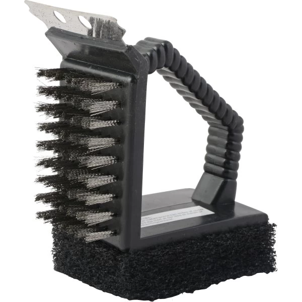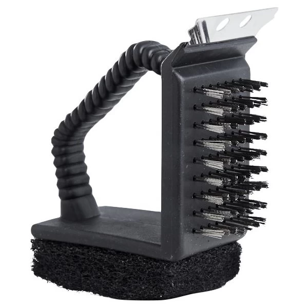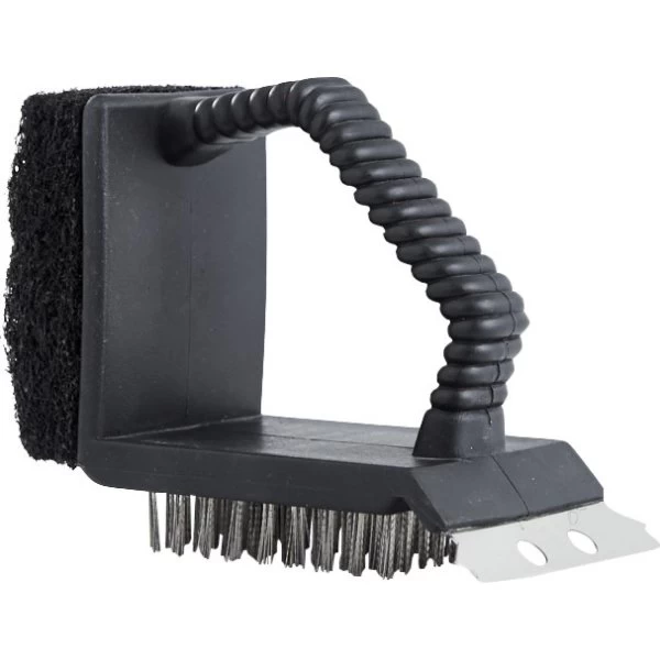 3-i-1 grillbørste med børste, svamp og skraber