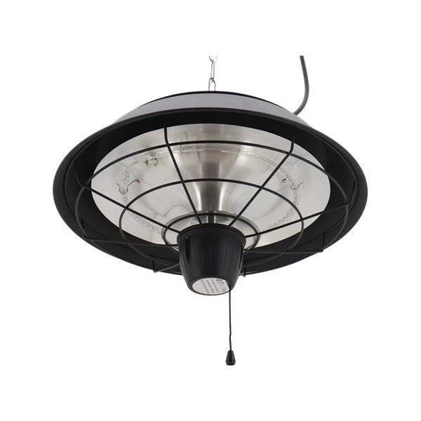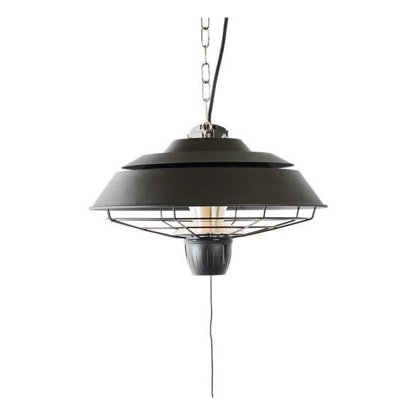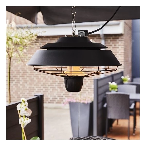 Terrassevarmeren leveres med kædeophæng og monteres derfor nemt i en krog eller lignende. Herefter skal der blot tilsluttes strøm og så er terrassevarmeren klar til at give varme over bordet.