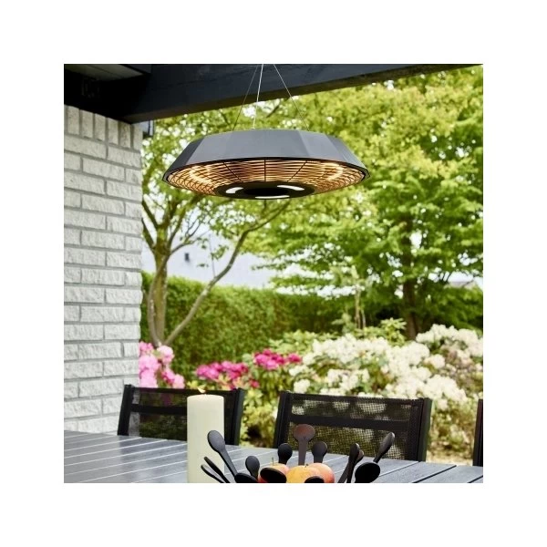 Denne lofthængte infrarød kortbølge HORTUS terrassevarmer er skabt i et smart og futuristisk design – den er ideel til montering over bordet i den overdækkede terrasse, forteltet eller i udestuen.