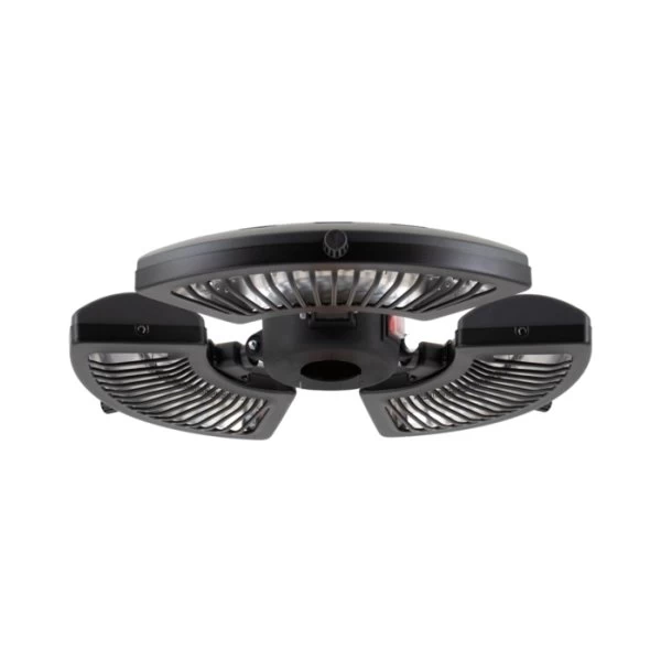 Denne terrassevarmer er til at placere under en parasol eller på en stander. Den har 3 separate varmere med infrarøde carbonrør, som kan tændes enkeltvis. Den kan afgive varme fra 3 vinkler blot ved et lille skub på den eller de varmere som man ønsker at ændre vinklen på.