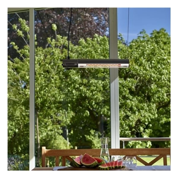 92% af energien konverteres til varme og giver rigeligt varme til de personer, der sidder indenfor en afstand af 3 meter fra varmeren. HORTUS terrassevarmer med 1500W halogen ultra low glare rør med en levetid på ca. 7000 timer. Inklusiv fjernbetjening.
