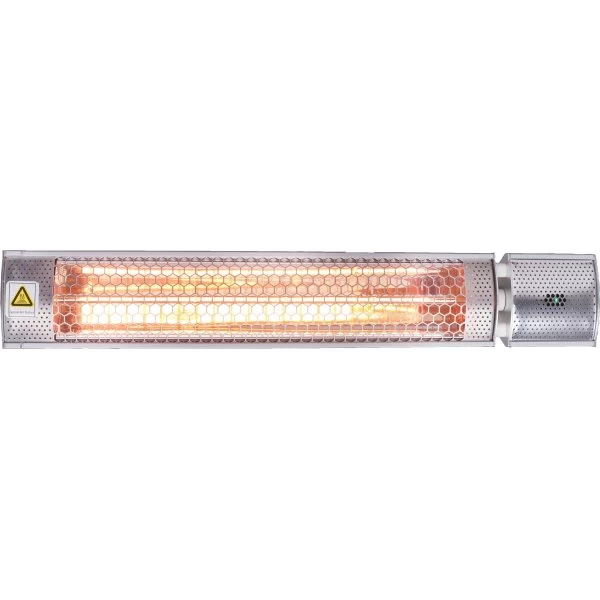 Flot væghængt terrassevarmer med en infrarød kortbølge i en cylinderform. Kraftigt 2000 W Golden Tube rør sikrer dig en god varmeoplevelse, hvor 92% af energien konverteres om til varme og giver rigeligt varme til de personer, der sidder indenfor en afstand op til 5 meter. Med muligheden for at skifte mellem 2 effekttrin kan varmen tilpasses til netop din ønskede temperatur.