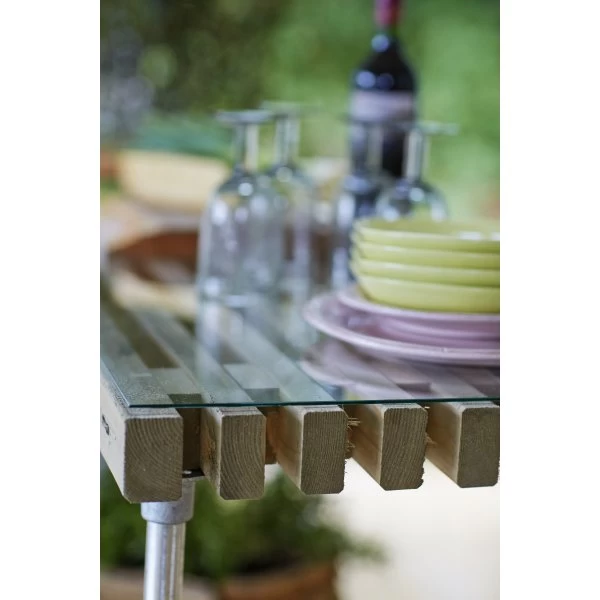 Dette grill og anretningsbord er lavet af de populære og moderne trætraller. Trætrallerne har et råt og rustikt look som giver et flot spil i indretningen, både inde og ude. Grillbordet kan også bruges som et plantebord.