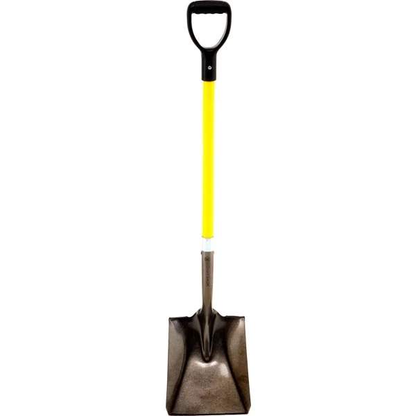 Skovl af høj kvalitet. Skovlen har et ekstremt slidstærkt glasfiberskaft med ekstra glasfiberforstærkning lige over stålbladet. Skovlen er af slidstærk stål, der ikke knækker eller brække. En soldi stålring binder stålbladet til akslen.