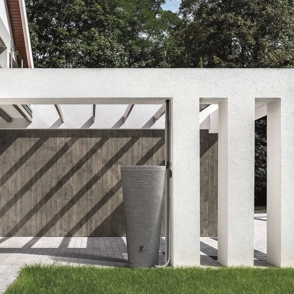 Funktionel regnvandstønde med en kapacitet på 320 liter. Produceret i vejr-bestandigt materiale. Udstyret med toplåg og hanesæt.