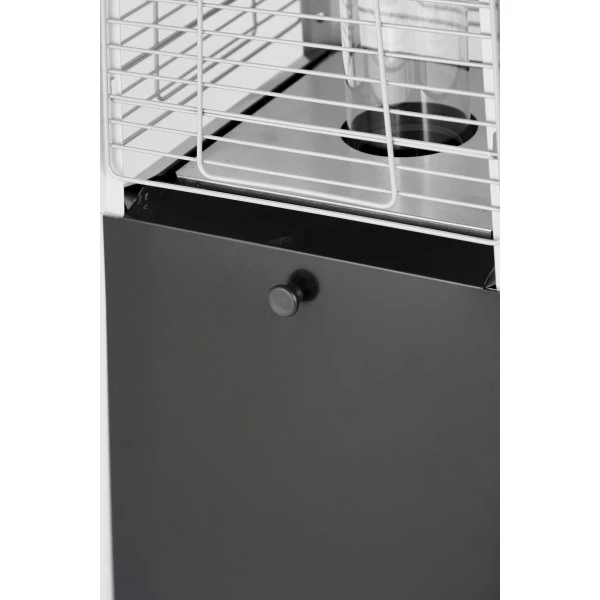 Terrassevarmeren har elektrisk tænding og er klar til brug ved tryk på kun én knap. Varmeren har et dækningsområde på 5-10 m2 så mange kan få glæde af varmen. Terrassevarmeren har “Anti-tilit” funktion som gør at den automatisk slukker hvis den skulle vælte.